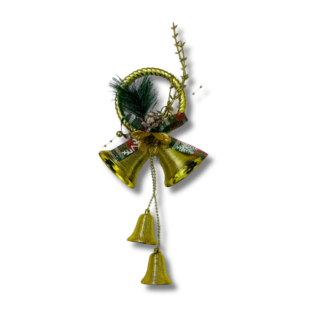 1. Enhance your Christmas decorations with our exquisite Christmas Bell Hanging set. This set includes two large and two small bells, adorned with delicate leaf and ribbon accents.