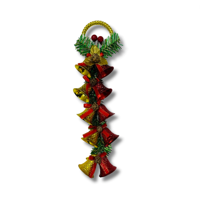 1. Enhance the festive ambiance of your home with our Christmas Hanging Red & Golden Bell set.