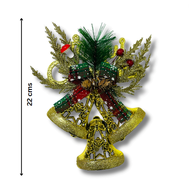 Christmas Bell Hanging 2 Big & 2 Small With Leaf & Ribbon